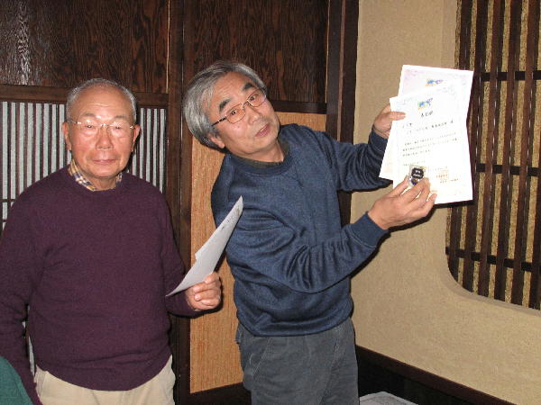 副賞賞品に新品のハンディ機を寄贈頂いた鈴木さんと高価な空気清浄機を寄贈頂